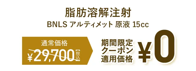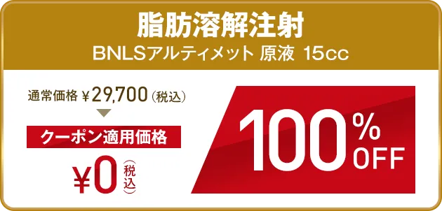 BNLS アルティメット(脂肪溶解注射)は、植物から抽出した成分を主成分とした従来品の「BNLS neo(脂肪溶解剤)」に、新成分L-カルニチン、アーティチョーク、カテキン、コエンザイムQ10といった、脂肪燃焼効果やエネルギー生成を促す有効成分がプラスされた脂肪溶解注射です。