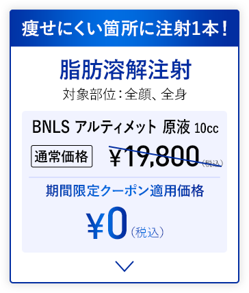 | 施術名 | 料金 | BNLSアルティメット 脂肪溶解注射 10cc |