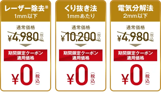 電気メスによる電気分解法2mm以下:4,980円(税込)