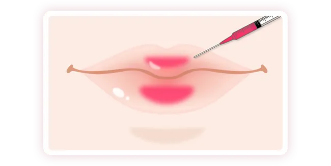 ヒアルロン酸を注入し、唇をふっくらと見せたり、アヒル口のような形を目指したりする施術です。
