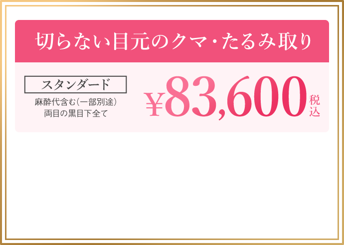 エクセレント:458,000円(税込)下まぶたの裏側から脂肪を取り出し、ふくらみやたるみを改善する施術です。