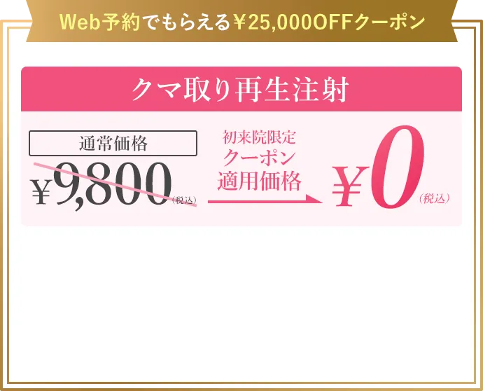 クマ取り再生注射:9,800円(税込)