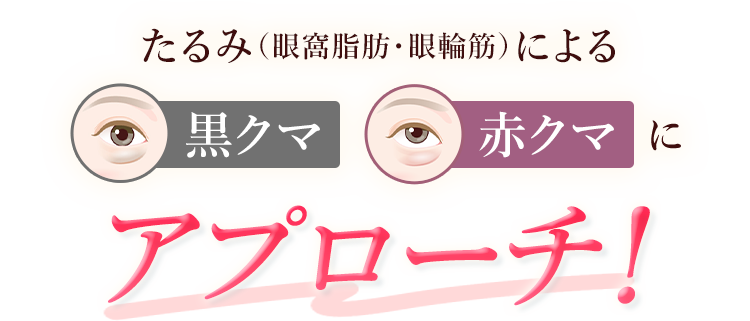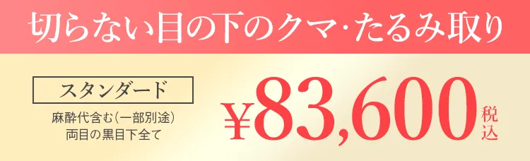 黒クマは目の下にある脂肪が原因のため、脂肪を直接取り除く「切らない目の下のクマ・たるみ取り」が効果的です。