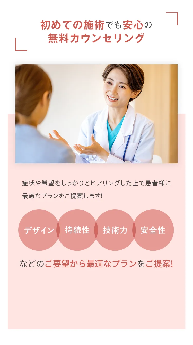 切らずに細い針を刺す施術のため、傷跡が残りにくいです。麻酔をして施術をおこなうため、痛みに敏感な方も安心して施術が受けられます。また、術後の赤みが気になる方は、施術箇所を冷やすと症状が早く改善されます。
